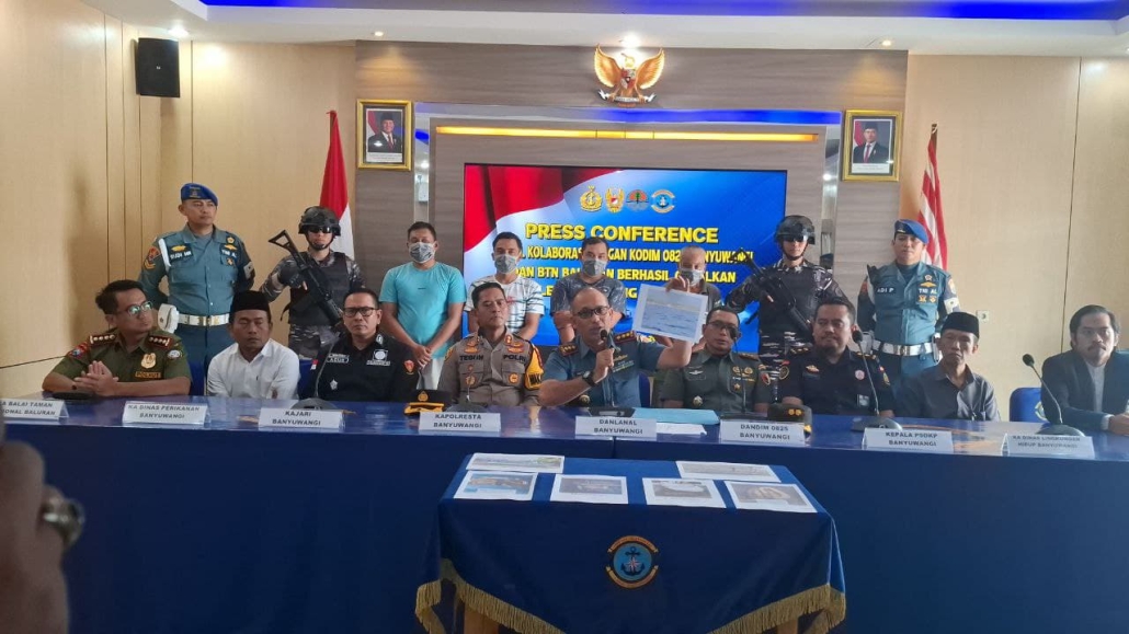 Banyuwangi,– TNI Angkatan Laut (Lanal Banyuwangi), bersama Kodim 0825/Banyuwangi dan Balai Taman Nasional (BTN) Baluran, berhasil menggagalkan praktik illegal fishing menggunakan bahan peledak (Handak) yang merusak ekologi laut. Hal ini diungkap dalam press conference yang digelar di Wisma Bahari Mako Lanal Banyuwangi, Jumat (07/03/2025), diikuti 50 peserta dari instansi terkait, akademisi, dan media.