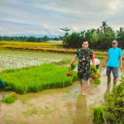 Kegiatan pendampingan yang dilakukan oleh Babinsa di lahan milik Buhari 65 tahun, Kelompok Tani Makmur Dusun Krajan Desa Dukuh Mencek yang sedang persiapan tanam dengan luas lahan 1 hektar yang mengandalkan irigasi air sungai.