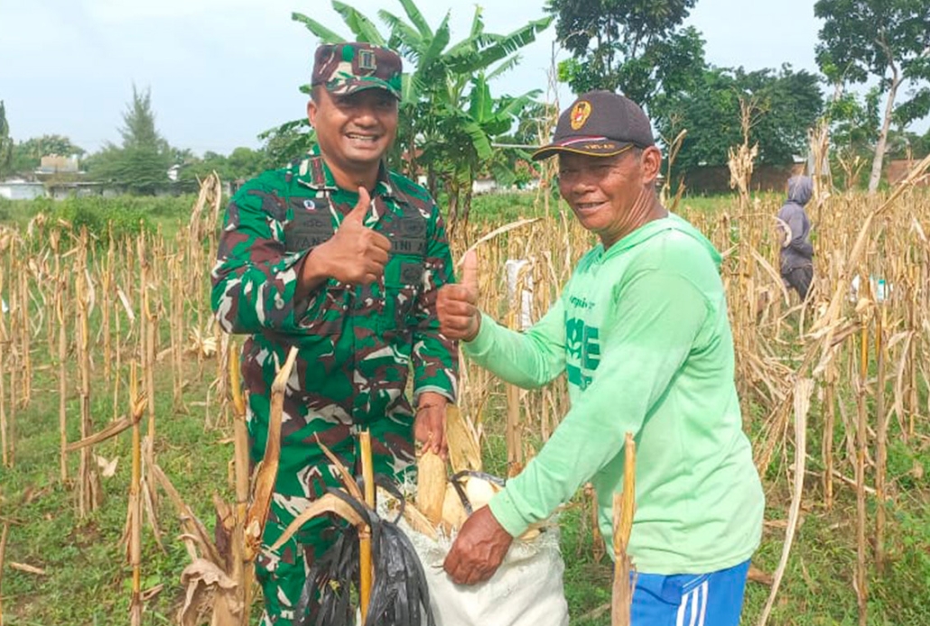 Sukseskan Program Ketahanan Pangan, Babinsa Jatirogo Ajak Warga Panen Jagung NK Perkasa