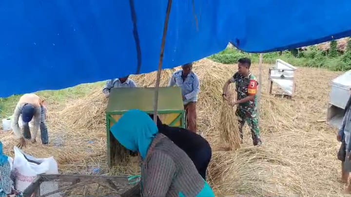 Babinsa Pangarengan Berpartisipasi Aktif dalam Panen Padi Warga Desa Gulbung