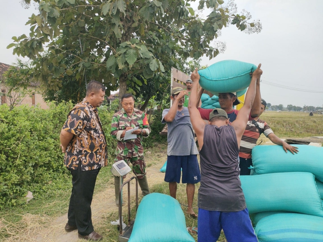 Babinsa Aktif Kawal Panen dan Penyerapan Gabah Petani Mulung Gresik, Hasilkan 7,6 Ton.