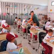 Pantauan di lapangan, tampak personel Babinsa melaksanakan kegiatan pendampingan di SDN 1-3-4 Wates, Jalan Raya Ijen, Kecamatan Magersari.