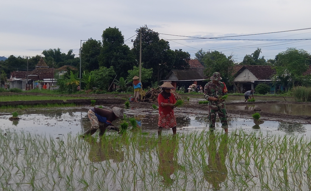 PAMEKASAN,- Upaya mendukung ketahanan pangan terus digalakkan oleh berbagai pihak. Salah satunya dilakukan oleh Seda M. Hidayat Babinsa Koramil 0826-01 Pamekasan yang bersama Kelompok Tani Tunas Muda 2 melaksanakan penanaman padi tahap kedua di Desa Panpan. Kegiatan ini bertujuan untuk meningkatkan produksi pangan sekaligus memperkuat ketahanan pangan di daerah tersebut.