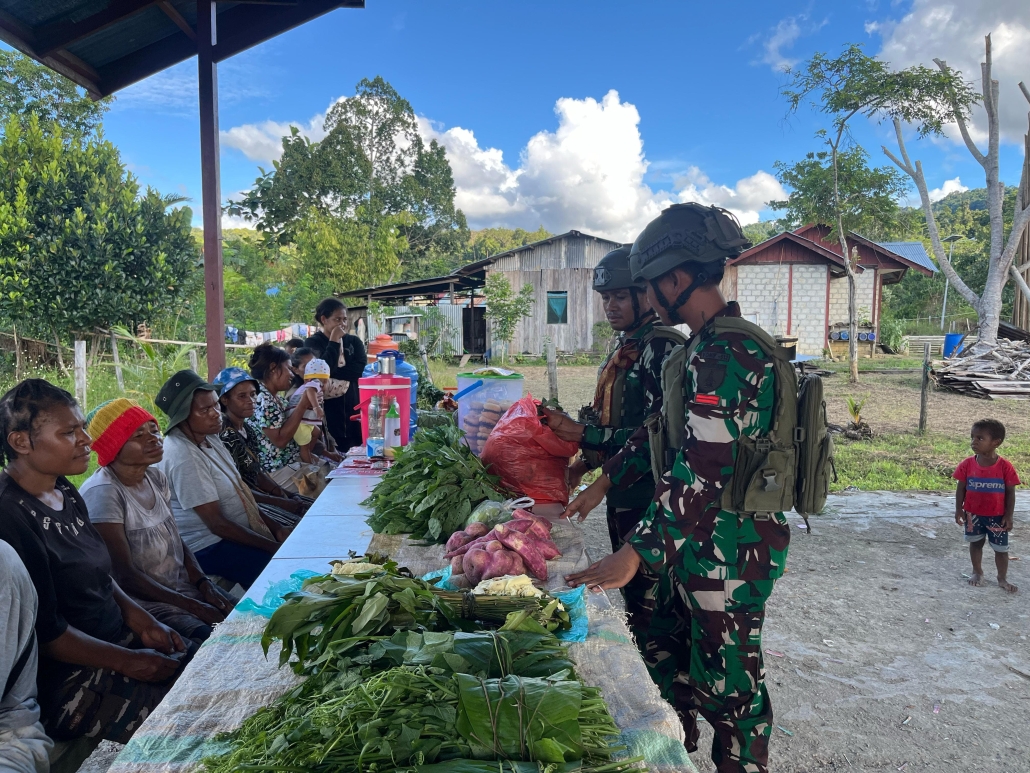 Selain memborong hasil bumi seperti sayur-sayuran, umbi-umbian, dan buah-buahan lokal, para prajurit juga berinteraksi hangat dengan masyarakat. Kehadirannya disambut dengan antusias, menciptakan suasana keakraban yang penuh dengan canda dan tawa.