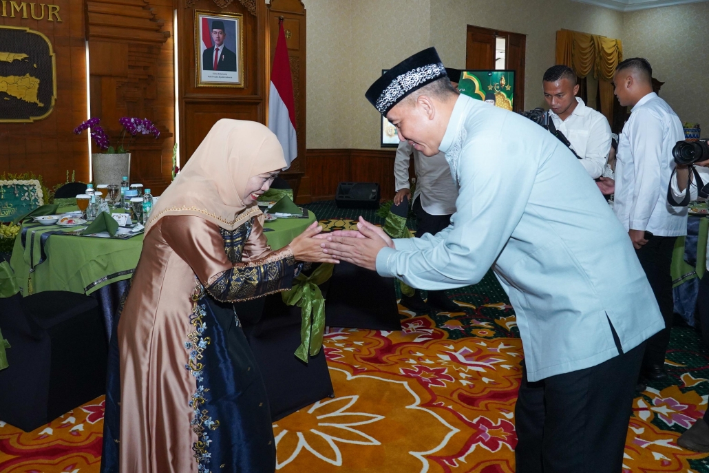 Gubernur Jawa Timur Khofifah Indar Parawansa menyambut langsung para pimpinan daerah dan pejabat di lingkungan Pemprov Jatim dalam sesi pertama halal bi halal. Sesi kedua dijadwalkan berlangsung sore hari, khusus bagi masyarakat umum, dengan partisipasi berbagai elemen masyarakat.