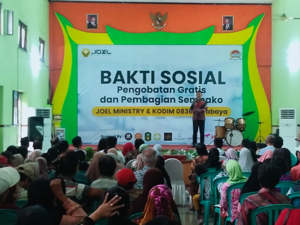 SURABAYA – Kodim 0830/Surabaya berkolaborasi dengan Yayasan Joel Ministry menggelar bakti sosial yang menyentuh langsung warga Surabaya. Kegiatan yang berlangsung Minggu, 27 April 2025 di SMP Negeri 37, Jalan Kalianyar 18-20, Kelurahan Kapasari, Kecamatan Genteng, ini meliputi pengobatan gratis dan pembagian sembako.