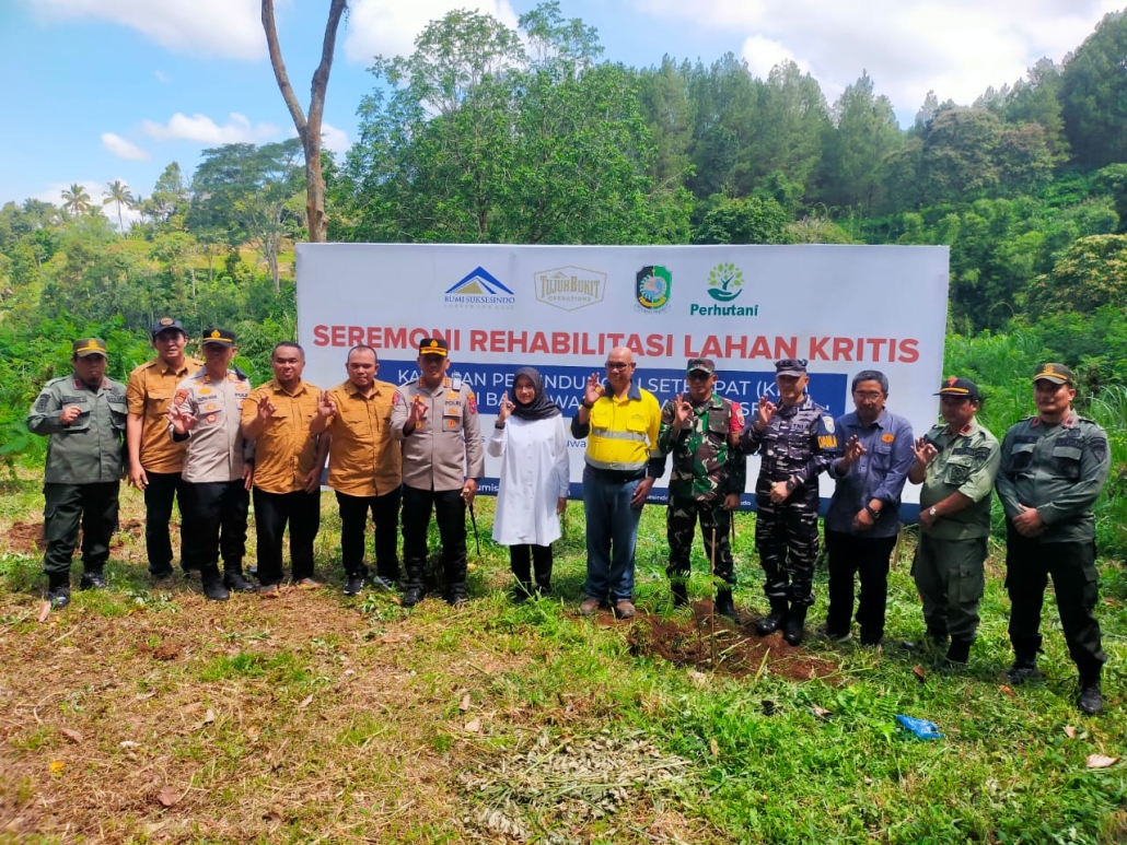 Banyuwangi,- Komandan Kodim 0825/Banyuwangi, Letkol Arh Joko Sukoyo S.Sos M.Han, bersama Forum Komunikasi Pimpinan Daerah (Forkopimda) Kabupaten Banyuwangi menghadiri kegiatan Ceremoni Rehabilitasi Lahan Kritis (KPS) yang dilaksanakan di Aghatis Forest, Dusun Rembang, Desa Banjar, Kecamatan Licin pada Minggu (27/4/2025). Kegiatan yang bertujuan untuk merehabilitasi kawasan perlindungan setempat (KPS) Perhutani Banyuwangi Barat dan Selatan ini diikuti oleh sekitar 100 orang.