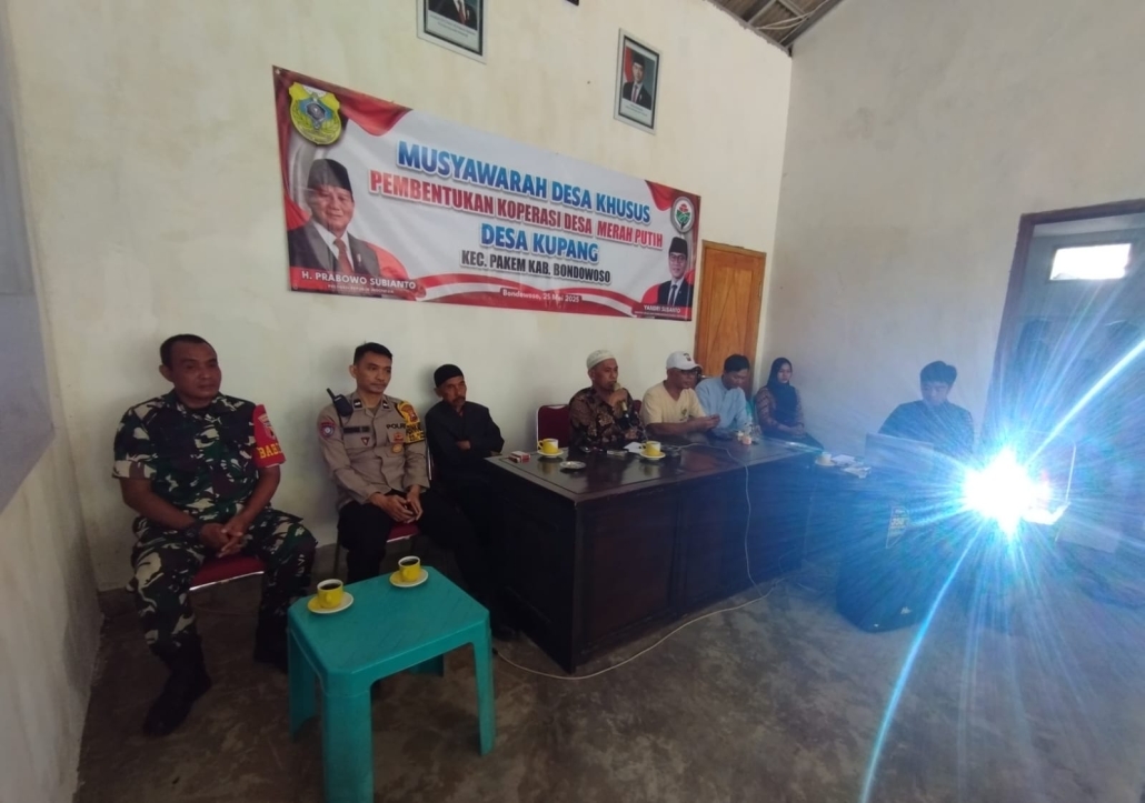 Bondowoso – Babinsa Posramil 0822/05 Pakem Desa Kupang, Serma Umarudin, menunjukkan komitmen nyata dalam mendampingi pembangunan desa dengan menghadiri secara langsung kegiatan Musyawarah Desa Khusus Insidental (Musdesus) Pembentukan Koperasi Merah Putih yang digelar di Balai Desa Kupang, Kecamatan Pakem, Kabupaten Bondowoso, Minggu (25/5).