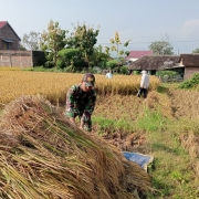 “ Hari ini ada kegiatan pendampingan dan pengawalan membantu petani (Bapak Misno) salah satu warga Dusun Bangon Desa Kapuran yang sedang memanen padi di sawah milik pribadi, “ ucap Kopda Deli P.