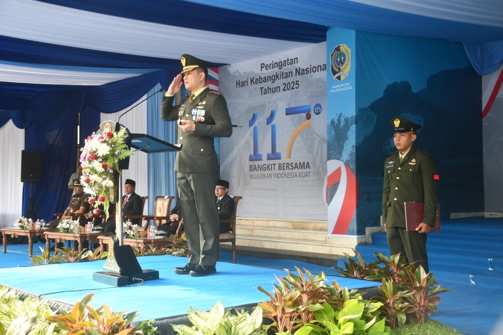 Tulungagung – Komandan Kodim 0807/Tulungagung, Letkol Kav M. Nashir, S.Hub.Int, bertindak sebagai Inspektur Upacara dalam peringatan Hari Kebangkitan Nasional (Harkitnas) ke-117 tahun 2025 yang digelar di halaman Kantor Bupati Tulungagung, Selasa (20/05/2025).