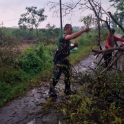 “Bersama dengan masyarakat pohon tumbang berhasil dibersihkan dan akses jalan dapat dilalui dengan aman”, Ujar Babinsa Peltu Cholik.