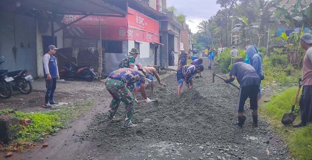Pengerasan jalan ini merupakan tahapan awal sebelum dilakukan pengaspalan, yang bertujuan memperlancar mobilitas warga dan meningkatkan akses ekonomi desa. Proses pengerjaan dilakukan secara bergotong-royong bersama masyarakat setempat, mencerminkan sinergi TNI dan rakyat yang solid.