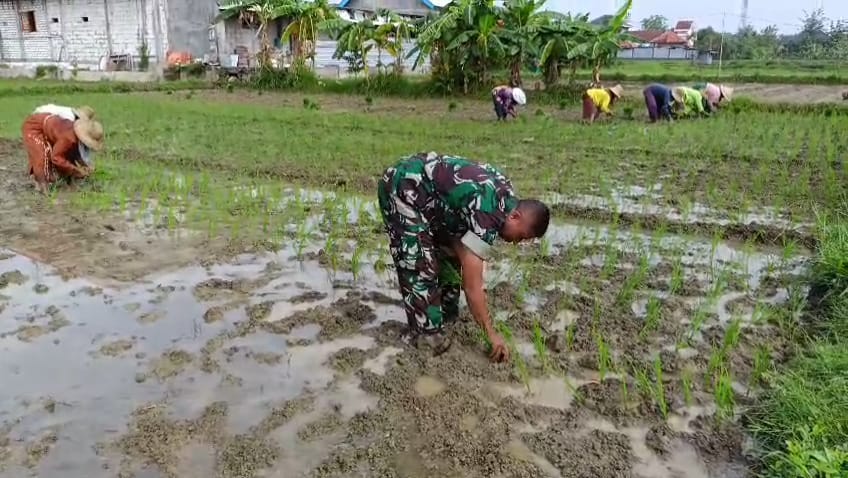 Peningkatan Produktivitas Pertanian: Babinsa Tanjung Berpartisipasi dalam Penanaman Padi