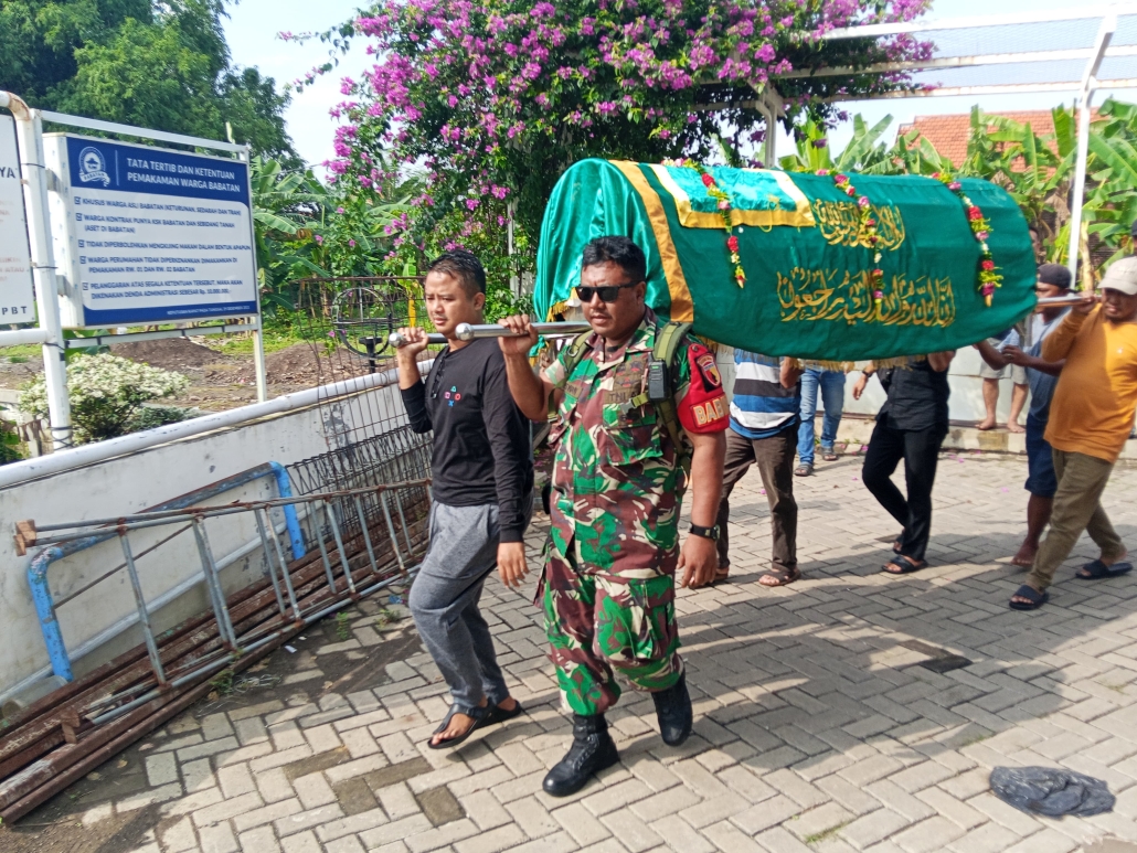 Almarhum dimakamkan di TPU Babatan, di belakang Gedung Serba Guna Moni RW 01. Kehadiran Babinsa di tengah warga bukan hanya sekadar simbol kehadiran TNI, tetapi wujud nyata kepedulian dan kedekatan emosional aparat teritorial dengan masyarakat binaannya.