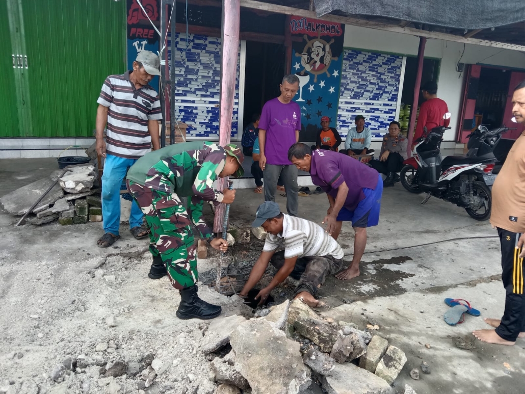 Kegiatan ini dipimpin langsung oleh Serma Samsuri, Sertu Purnomo, dan Serda Rohim. Mereka bersama masyarakat bahu-membahu membersihkan penyumbatan parit di sepanjang jalan dusun. Parit yang sebelumnya tertutup oleh sampah dan sedimentasi tanah dibersihkan secara menyeluruh untuk memperlancar aliran air, terutama menjelang musim penghujan.
