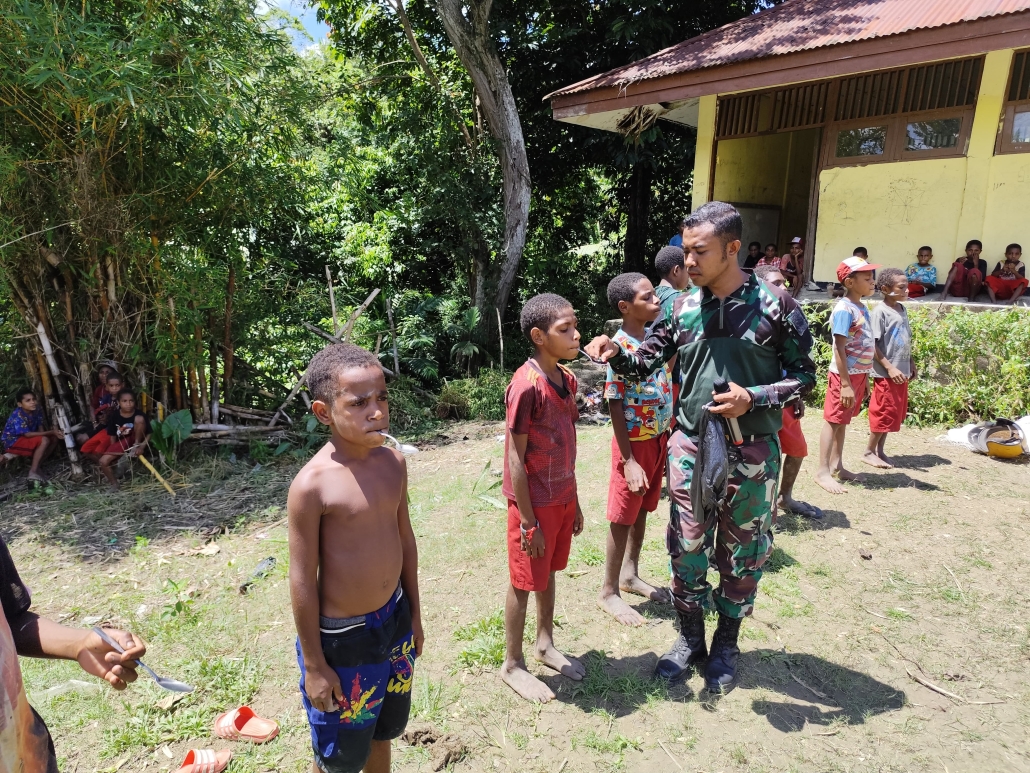 “Kami sangat bersyukur, anak-anak bisa tertawa dan bermain bersama bapa-bapa TNI. Mereka sangat jarang dapat hiburan seperti ini. Terima kasih atas perhatian dan cinta yang diberikan,” ungkap Ibu Guru Kesli, salah satu pengajar SD YPPK Pulboa.