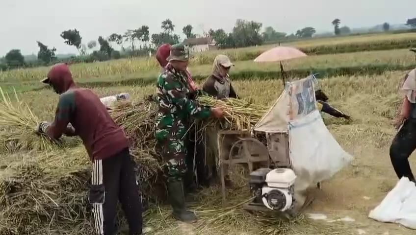 Babinsa Dagangan Dampingi Serapan Gabah Petani, Bulog Serap 7 Ton Gabah di Desa Jetis