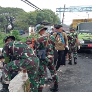Puluhan personel TNI, Polri, DLHK, perangkat desa, dan masyarakat bahu membahu membersihkan aliran sungai. Sampah yang berhasil dikumpulkan kemudian dimasukkan ke dalam kantong besar dan diangkut menggunakan truk DLHK untuk dibuang ke tempat pembuangan akhir.