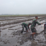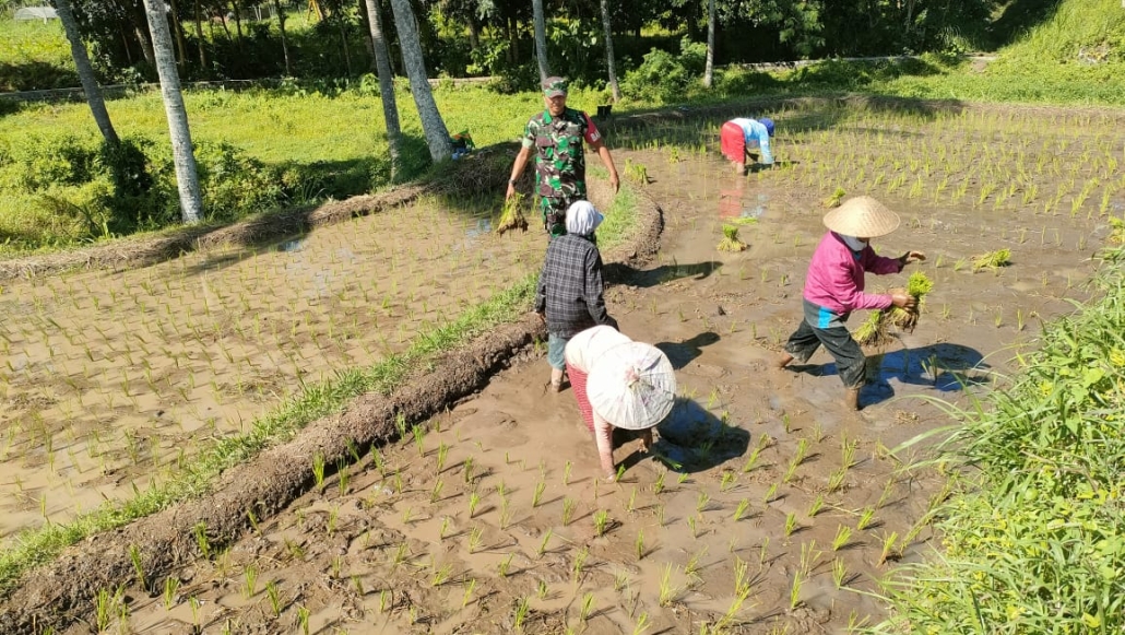 Serda Deny, yang saat itu sedang menjalankan piket di Posramil, tidak segan-segan turun ke lahan sawah milik Ibu Siti di Dusun Sundang RT 007/RW 003 untuk membantu proses awal tanam padi di lahan seluas 200 meter persegi. Kegiatan dimulai pukul 09.30 WIB dan berlangsung hingga pekerjaan selesai.