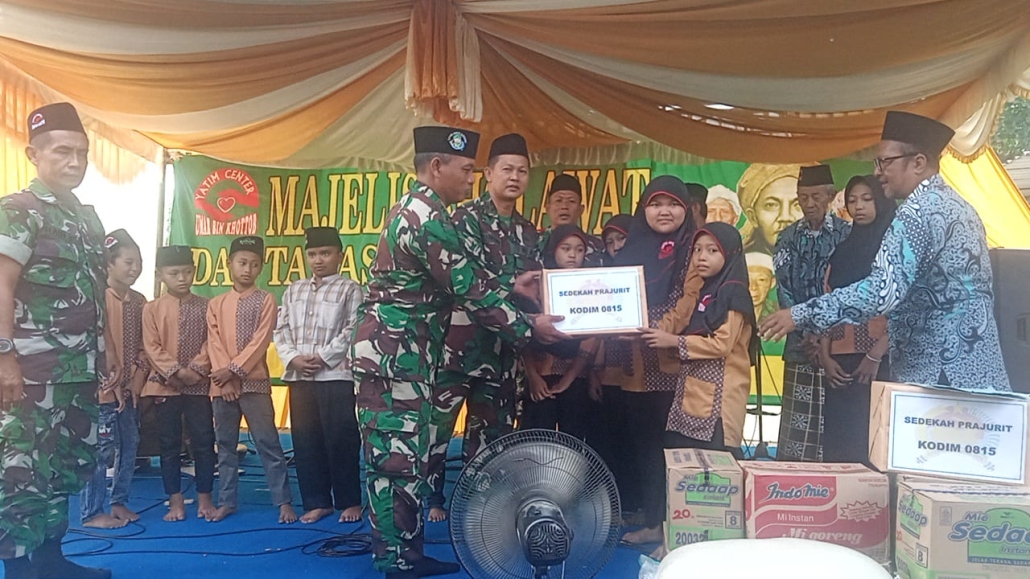 Mojokerto – Wujud kepedulian sosial terhadap anak-anak yatim kembali ditunjukkan prajurit TNI dari Kodim 0815/Mojokerto. Melalui program Sedekah Prajurit, Koramil 0815/05 Gedeg menyalurkan santunan kepada Yayasan Yatim Center Umar Bin Khottob, yang berada di Dusun Sidorembug, Desa Balongsari, Kecamatan Gedeg, Kabupaten Mojokerto, Jawa Timur, Ahad (22/06/2025).