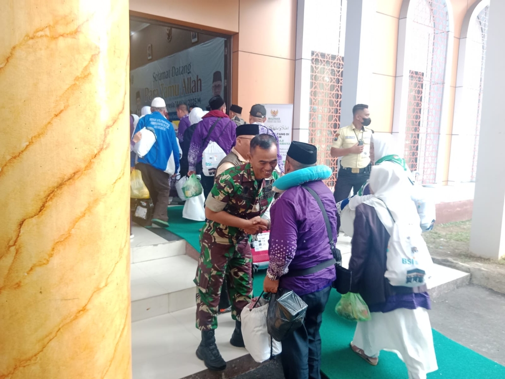 SURABAYA – Kodim 0830/Surabaya melalui jajaran Koramil 0830-10/Sukolilo melakukan pengecekan dan pemantauan langsung terhadap kedatangan jamaah haji tahun 1446 H/2025 M Kloter 33 asal Jember, yang tiba pada Minggu, 22 Juni 2025. Sebanyak 380 jamaah haji dalam kloter tersebut mendapat perhatian khusus pasca adanya informasi ancaman bom terhadap pesawat yang ditumpangi.