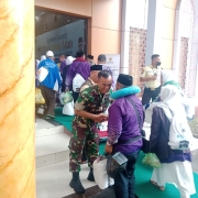 Danramil Sukolilo, Mayor Arm Iman Yulianto mengucapkan selamat Datang di Tanah Air bagi seluruh Jemaah Haji asal Jember, Personel Koramil Sukolilo turun langsung ke lapangan guna memastikan kondisi jamaah dalam keadaan aman dan sehat setelah perjalanan dari Tanah Suci.
