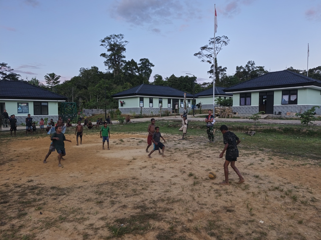 Lomba sepak bola kaki, yang digelar di dalam area pos, berlangsung dengan meriah. Sorak sorai anak-anak yang bertanding disambut dengan tepuk tangan dan gelak tawa dari prajurit yang turut menjadi juri sekaligus suporter. Sepatu tidak menjadi syarat wajib karena semangat dan keceriaan jauh lebih utama.