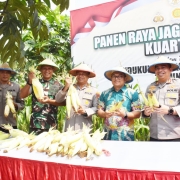 Banyuwangi,- Dandim 0825/Banyuwangi, yang diwakili Kasdim Mayor Kav Suprapto ikut melakukan panen raya jagung quartal 2 tahap 2 secara serentak secara virtual di Desa Tegalharjo, Kecamatan Glenmore, Kabupaten Banyuwangi. Kamis (05/06/2025).