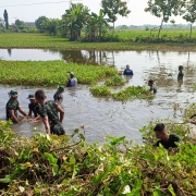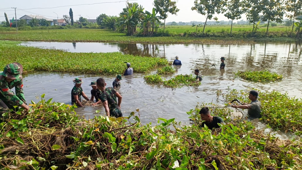 Tanpa ragu, anggota Satgas turun langsung ke dalam waduk bersama warga. Mereka Meneruskan bahu-membahu mengangkat, mencabut tanaman liar, serta membersihkan sampah sampah. Pemandangan penuh semangat ini menjadi potret nyata kemanunggalan TNI dan rakyat dalam membangun desa.