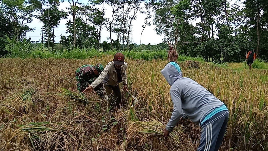 Probolinggo, Dalam rangka mendukung Gerakan Antisipasi Darurat Pangan Nasional, Kodim 0820/Probolinggo terus aktif mendampingi para petani di wilayah teritorialnya. Salah satu kegiatan pendampingan dilakukan oleh Sertu Aksan, anggota Koramil 0820-20/Banyuanyar, yang turut serta dalam proses panen padi milik Bapak Mustofa, warga Dusun Tekong, Desa Klenang Kidul, Kecamatan Banyuanyar, Kabupaten Probolinggo,(3/6)