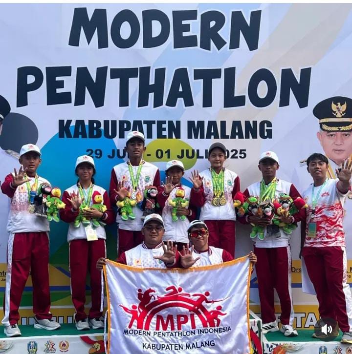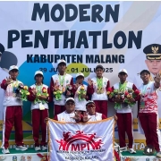 Malang,- Atlet Modern Pentathlon Indonesia (MPI) Kabupaten Malang, Sadiqi Asyrof Rafsanali, mencatat prestasi gemilang dalam ajang Pekan Olahraga Provinsi (Porprov) IX Jawa Timur 2025. Ia berhasil meraih medali perak di nomor Biathle Putra Relay (MPI), sebuah pencapaian membanggakan bagi kontingen Kabupaten Malang yang digelar 28 Juni – 05 Juli 2025.