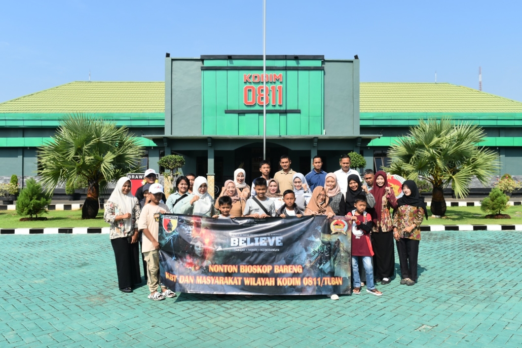 TUBAN, — Dalam rangka membangun semangat karakter generasi bangsa dan menanamkan nilai-nilai kejuangan sejak dini, Kodim 0811/Tuban menggelar kegiatan Nonton Bareng (Nobar) film inspiratif “Believe: Takdir, Mimpi, Keberanian” bersama KBT dan masyarakat binaan bertempat di Cinema XXI Studio 3 TP1, Jum’at (11/07/2025).