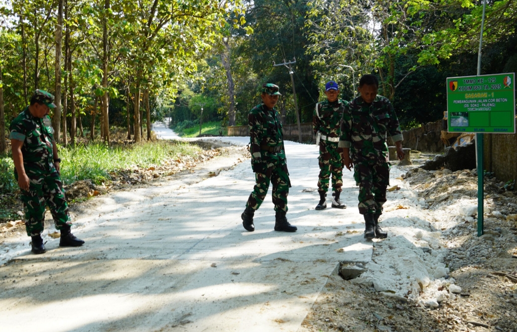 BOJONEGORO, – Kepala Staf Kodim (Kasdim) 0813 Bojonegoro Mayor Inf Bambang Riyanto, meninjau langsung sejumlah pengerjaan fisik sasaran program TNI Manunggal Membangun Desa atau TMMD ke- 125 tahun 2025 yang berlangsung di Desa Soko Kecamatan Temayang Kabupaten Bojonegoro, Selasa (29/7/2025).