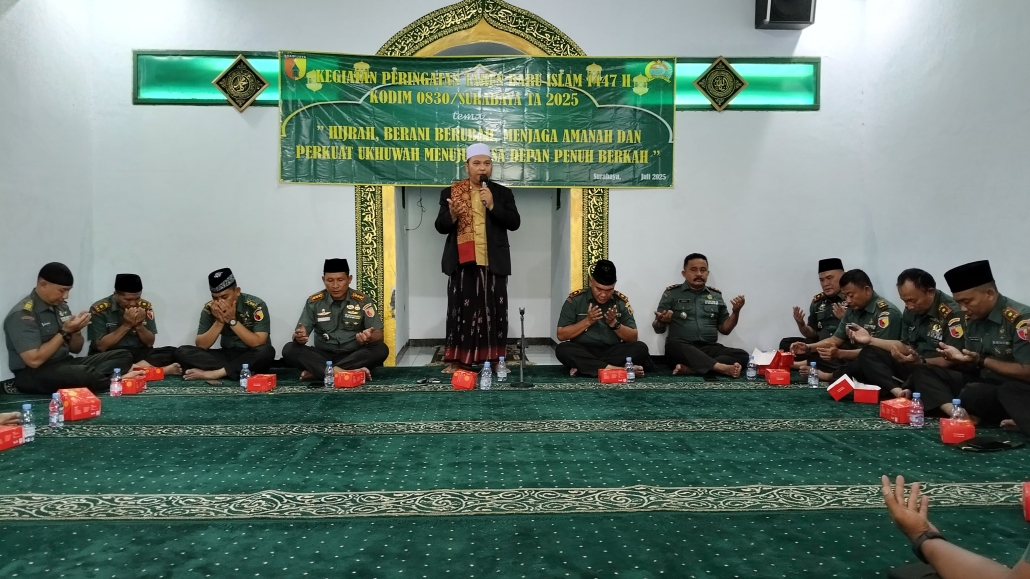 Surabaya, – Dalam rangka memperingati Tahun Baru Islam 1447 Hijriah, Kodim 0830/Surabaya menggelar kegiatan peringatan 1 Muharram yang bertempat di Musholla Al Hikmah, Jalan Gresik No. 52, Perak Barat, Kecamatan Krembangan, pada Senin (7/7/2025).