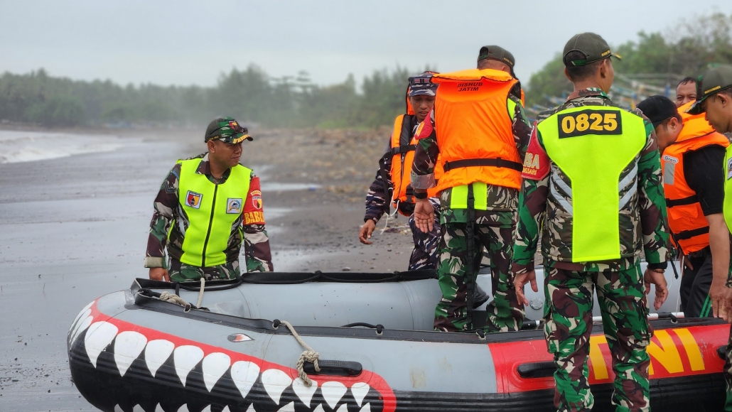 Banyuwangi – Anggota Kodim 0825/Banyuwangi bersama unsur TNI AL, pemerintah kecamatan, dan elemen masyarakat melaksanakan kegiatan penyisiran pantai dalam rangka membantu proses evakuasi korban kecelakaan laut KMP Tunu Pratama Jaya yang terjadi di perairan Banyuwangi.