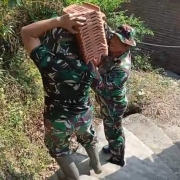 Madiun, 28 Juli 2025 – Anggota Satuan Tugas TNI Manunggal Membangun Desa (TMMD) ke-125 Kodim 0803/Madiun bersama warga Desa Ngranget, Kecamatan Dagangan, bahu-membahu melangsir material bangunan secara manual untuk merenovasi Rumah Tidak Layak Huni (RTLH) milik Bapak Jumiran, salah satu warga setempat.