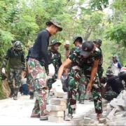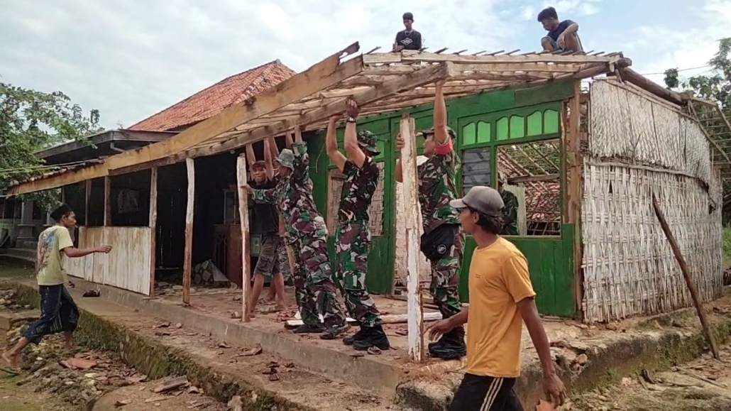 Rumah milik Slamet dibongkar karena kondisinya sudah rusak parah dan dikhawatirkan membahayakan penghuninya jika tetap ditempati. Dengan semangat kebersamaan, para prajurit TNI dan masyarakat setempat bahu-membahu menurunkan atap dan membongkar bagian bangunan yang sudah rapuh.