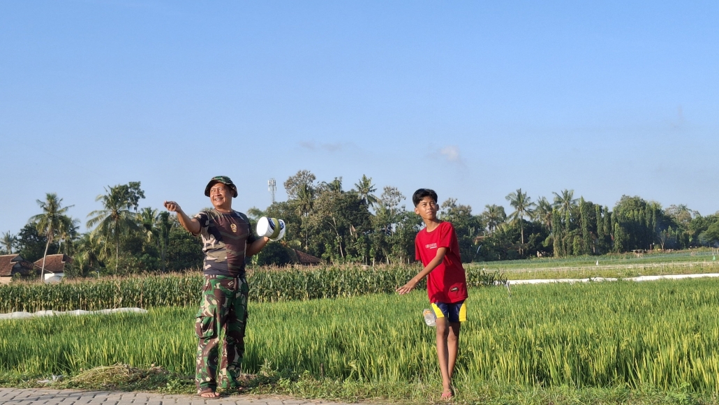 Banyuwangi – Di tengah kesibukan program TNI Manunggal Membangun Desa (TMMD) ke-125, para anggota Satuan Tugas (Satgas) menyempatkan diri untuk menjalin keakraban dengan anak-anak di Kecamatan Siliragung. Momen hangat tersebut terlihat saat para prajurit TNI asyik bermain layang-layang bersama anak-anak di Desa Kesilir dan Desa Siliragung, Jum’at (08/08/2025).