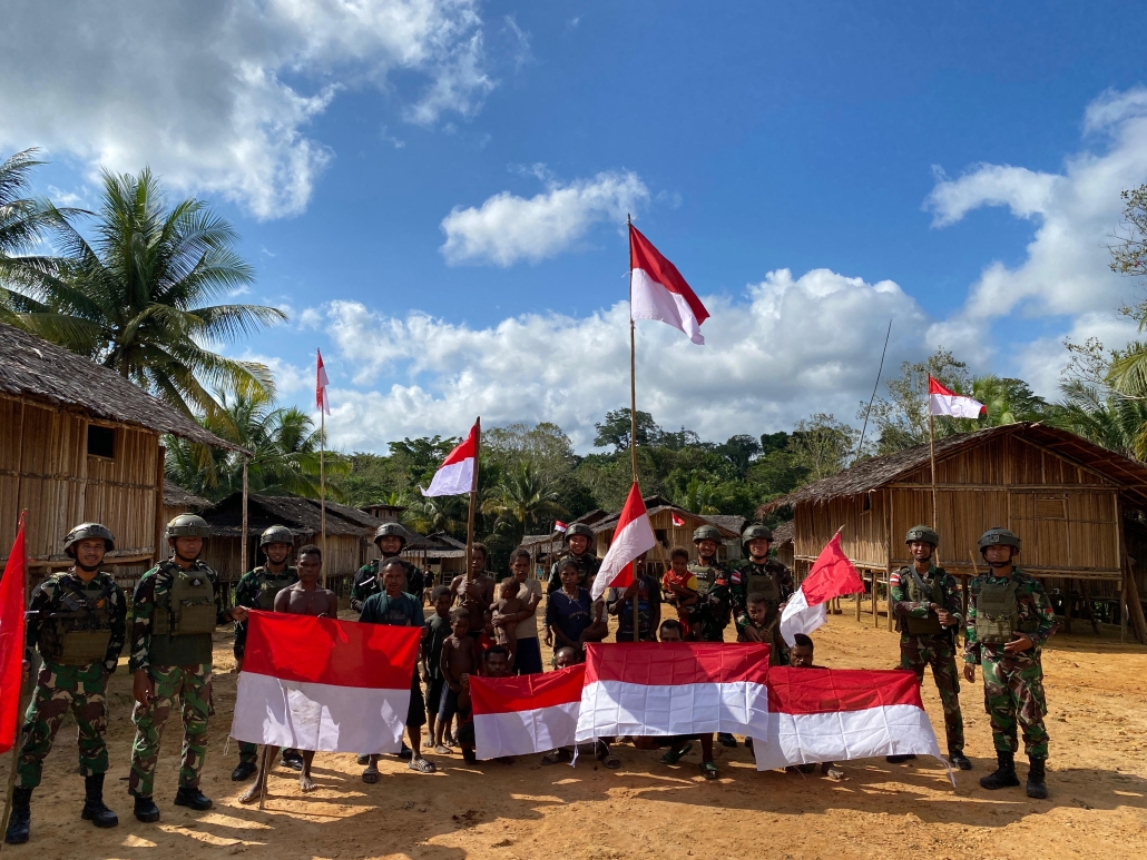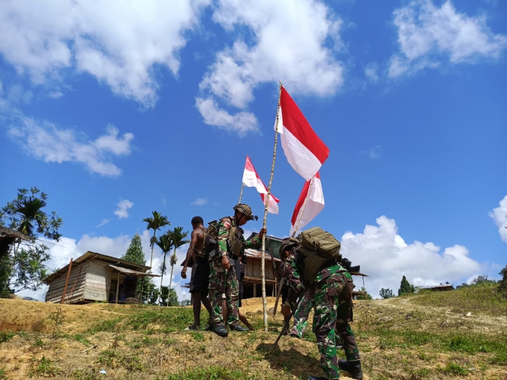 “Beta senang lihat kampung penuh bendera. Terima kasih abang-abang tentara yang sudah ajak kami sama-sama pasang bendera,” ungkap Bapa Yunus, salah satu tokoh masyarakat Kampung Fafenumbu.