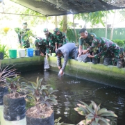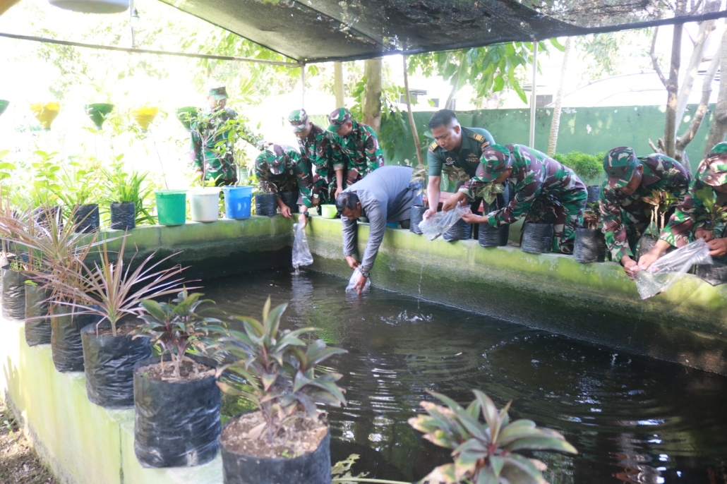 Bangkalan – Staf Teritorial Kodim 0829/Bangkalan melaksanakan kegiatan budidaya ikan Nila Bersama Dinas Pertanian, Perikanan dan Ketahanan Pangan Kab. Bangkalan di Area perkebunan Kodim 0829/Bangkalan, Kecamatan Bangkalan, Kabupaten Bangkalan, Senin (4/8/25).