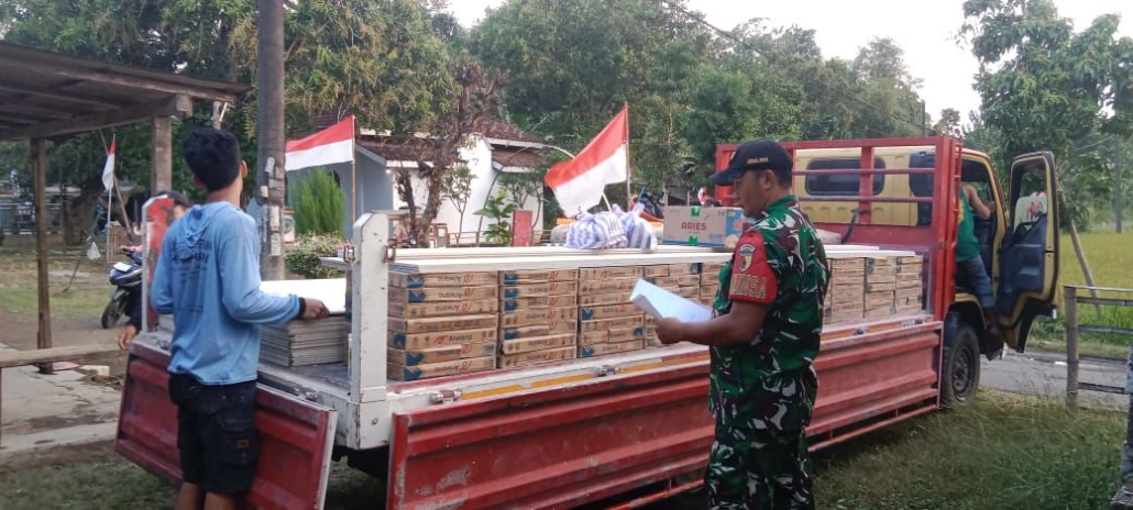 Nganjuk – Babinsa Koramil 19/Jatikalen, Kodim 0810/ Nganjuk, Koptu Heri.S bersama warga menurunkan bahan material bahan bangunan dan kasiboard untuk di distribusikan ke rumah yang akan menerima Program Rumah Tidak Layak Huni (RTLH) Dari program Pemerintah, Kabupaten Nganjuk, Selasa (05/08/2025).