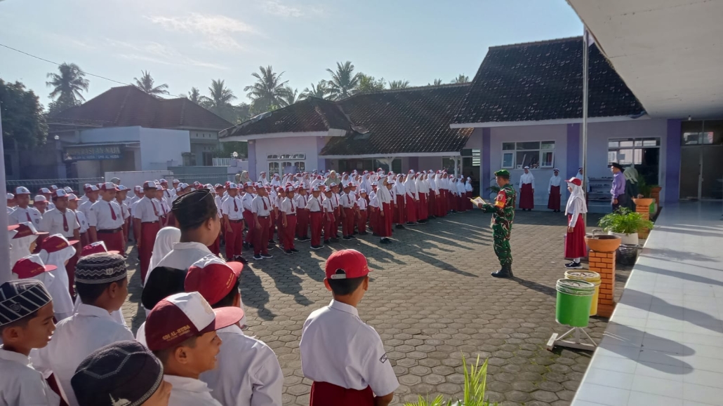 Banyuwangi – Dalam rangka membina kedisiplinan dan semangat nasionalisme, Koramil 0825/04 Genteng melalui Sertu Sucitro (Babinsa Desa Genteng Wetan) bertindak sebagai Pembina Upacara Bendera di halaman SD Islam AL-HUDA, Senin (04/8/2025). Kegiatan dimulai pukul 07.00 WIB dan berlangsung tertib serta penuh khidmat.