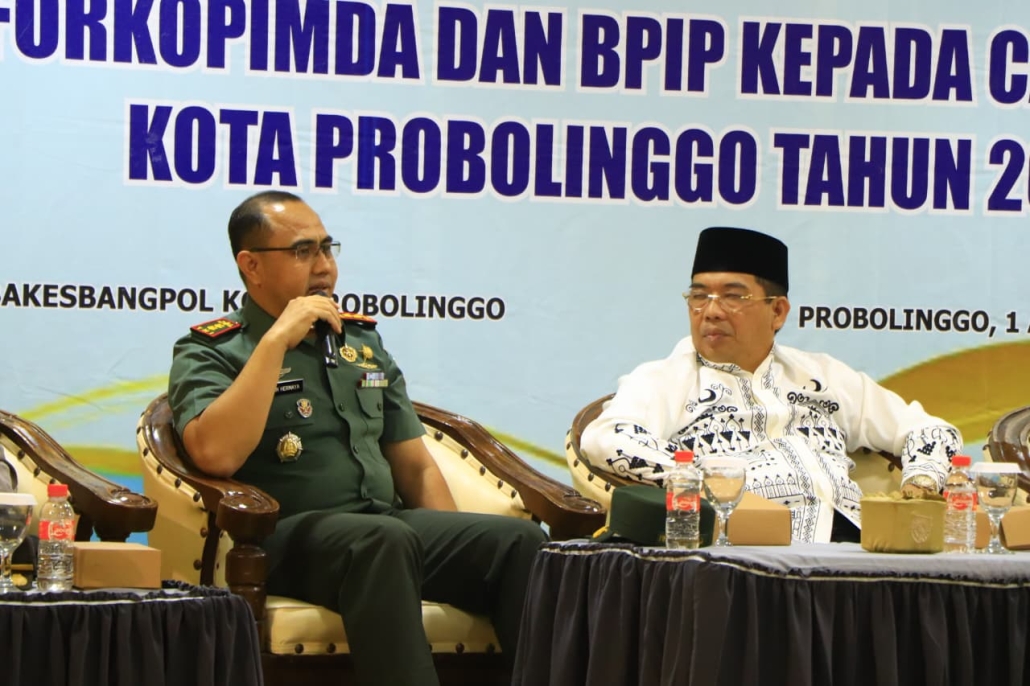 Probolinggo, Komandan Kodim 0820/Probolinggo Letkol Arh Iwan Hermaya bersama forum komunikasi pimpinan daerah (Forkopimda) dan badan pembinaan ideologi Pancasila (BPIP) memberikan suntikan semangat dan inspirasi kepada calon pasukan pengibar bendera pusaka (Paskibraka) Kota Probolinggo Tahun 2025.