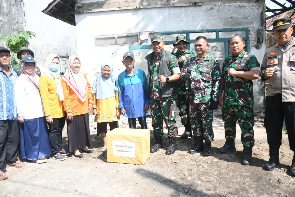 Kegiatan Sedekah Prajurit ini turut dihadiri Kasdim 0815 Mayor Inf Suwadi, Pabungdim Mayor Inf Desto Jumeno, para perwira staf Kodim, Danramil 0815/09 Mojosari Kapten Inf Benny Irawan, A.Md., perangkat desa, perwakilan Polsek Mojosari, serta tenaga kesehatan dari Puskesmas setempat. Kehadiran berbagai pihak tersebut semakin menegaskan semangat gotong royong dalam membantu sesama.