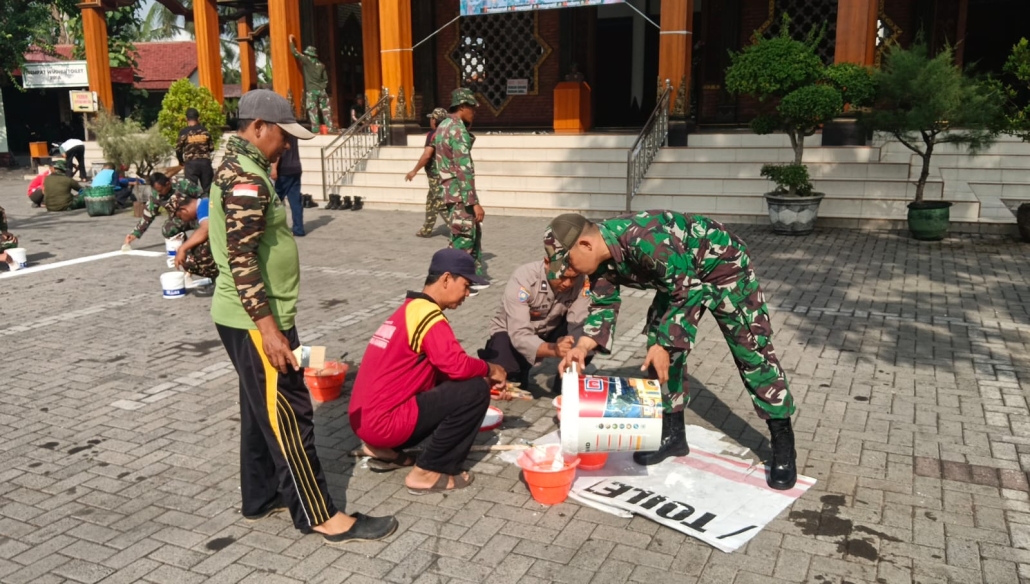 Kegiatan diawali apel pagi dipimpin Danramil 0815/02 Trowulan, Kapten Czi M. Syaikhu Anwar. Selanjutnya, personel TNI-Polri, pemerintah desa, organisasi masyarakat, dan warga bersama-sama melakukan pengecatan area parkir, pembersihan rumput di paving, pemotongan ranting serta perapian pohon, pengecatan tanda batas parkir, dan pembersihan dalam masjid.