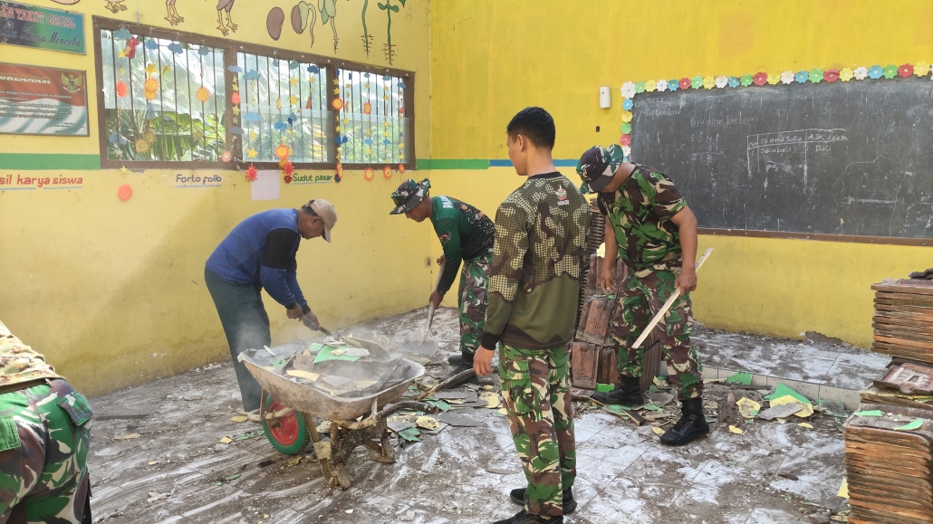 Sejak pagi, semangat gotong royong membara. Prajurit Koramil 0806-05/Kampak dan warga Desa Ngadimulyo bekerja tanpa sekat. Ada yang mengangkut material, mencampur adukan semen, hingga menata bata. Suasana penuh keakraban itu menunjukkan, ketika TNI dan rakyat bersatu, pekerjaan berat menjadi ringan.