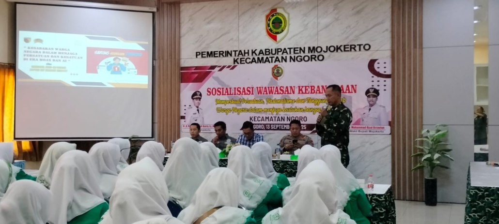 Mojokerto, – Upaya memperkuat persatuan dan menumbuhkan nasionalisme kembali digaungkan dalam kegiatan Sosialisasi Wawasan Kebangsaan yang digelar di ruang pertemuan Kecamatan Ngoro, Kabupaten Mojokerto, Jawa Timur, Sabtu (13/09/2025). Kegiatan yang dihadiri sekitar 90 peserta ini menghadirkan narasumber dari berbagai unsur, mulai dari legislatif, kepolisian, hingga TNI.