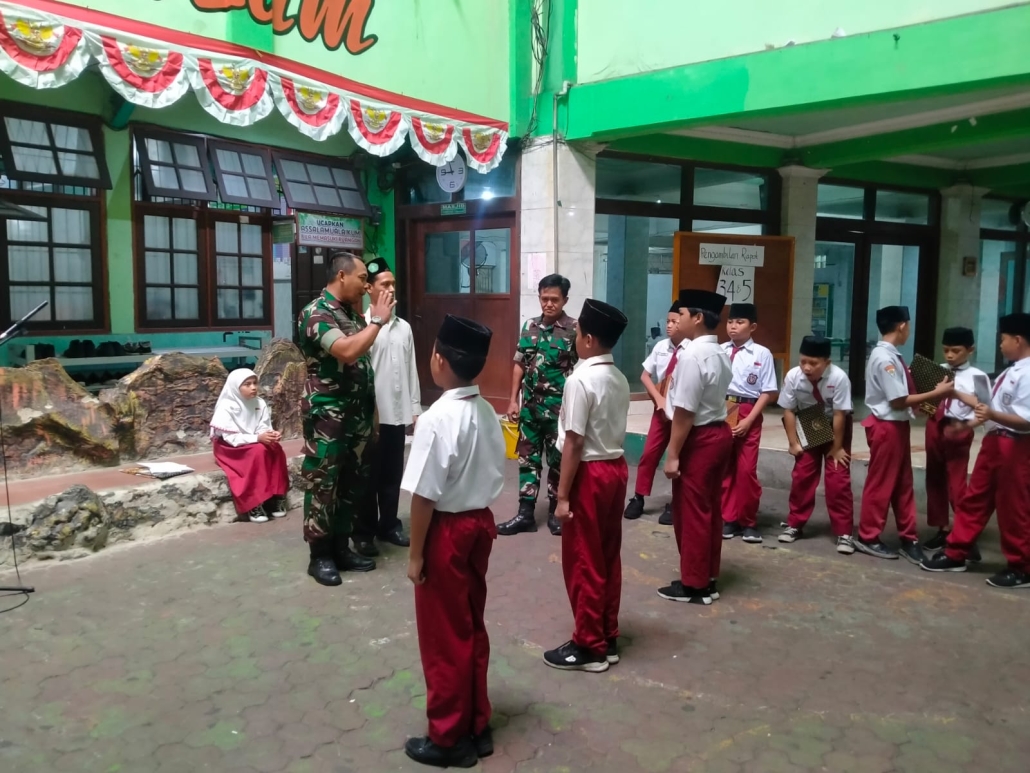 Babinsa Karangpilang Latih PBB Siswa MI Miftahul Ulum Tanamkan Disiplin Sejak Dini