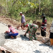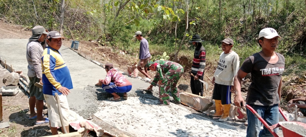Dengan penuh semangat, Sertu Rokip bersama warga bahu membahu mencampur adukan semen dan meratakan cor jalan. Kerja bakti tersebut bertujuan memperlancar akses masyarakat sekaligus memperkuat kebersamaan antara TNI dan warga dalam membangun lingkungan yang lebih baik.