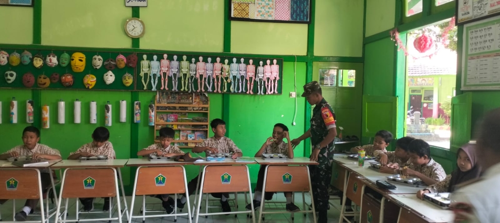 Selama kegiatan berlangsung, Babinsa turut memantau jalannya pembagian makanan kepada siswa, memastikan kelayakan makanan, dan berinteraksi dengan siswa serta guru. Ia juga memberikan imbauan kepada para siswa agar selalu menjaga kebersihan dan membiasakan pola hidup sehat.